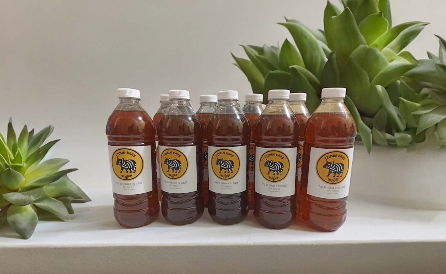 El nombre de nuestra marca se deriva de las palabras en maya “Tzimin” (tapir) y “Kaab” (abeja). Nació de nuestro compromiso con la conservación, que nos llevó a instalar bebederos para el monitoreo de fauna, donde en 2022 observamos a una mamá tapir con su cría, quienes regresan frecuentemente a tomar agua.